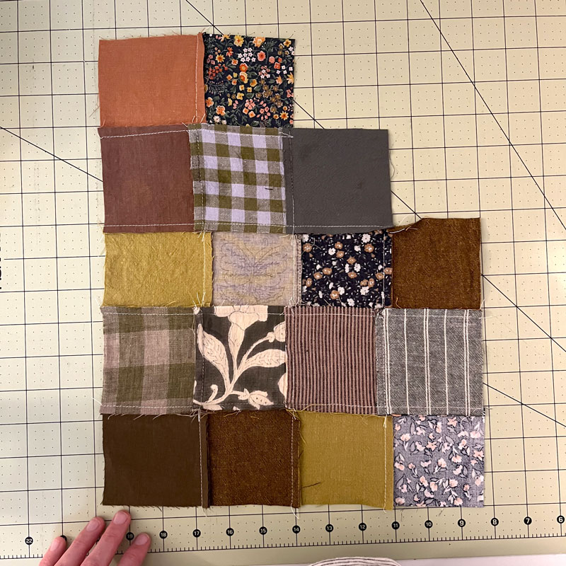 Sew squares into horizontal rows using consistent 1/4″ seams. Chain piecing speeds things up—feed square pairs through your machine without cutting thread between them.