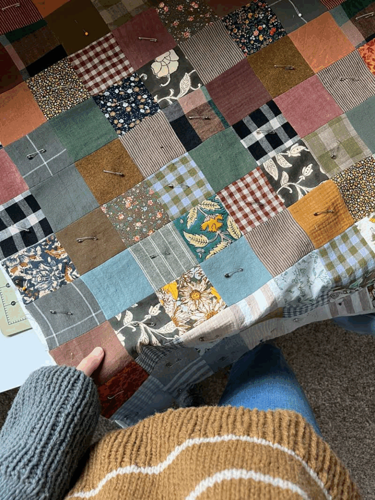 - Stitch-in-the-ditch: Sew directly in seam lines between squares (most invisible)
