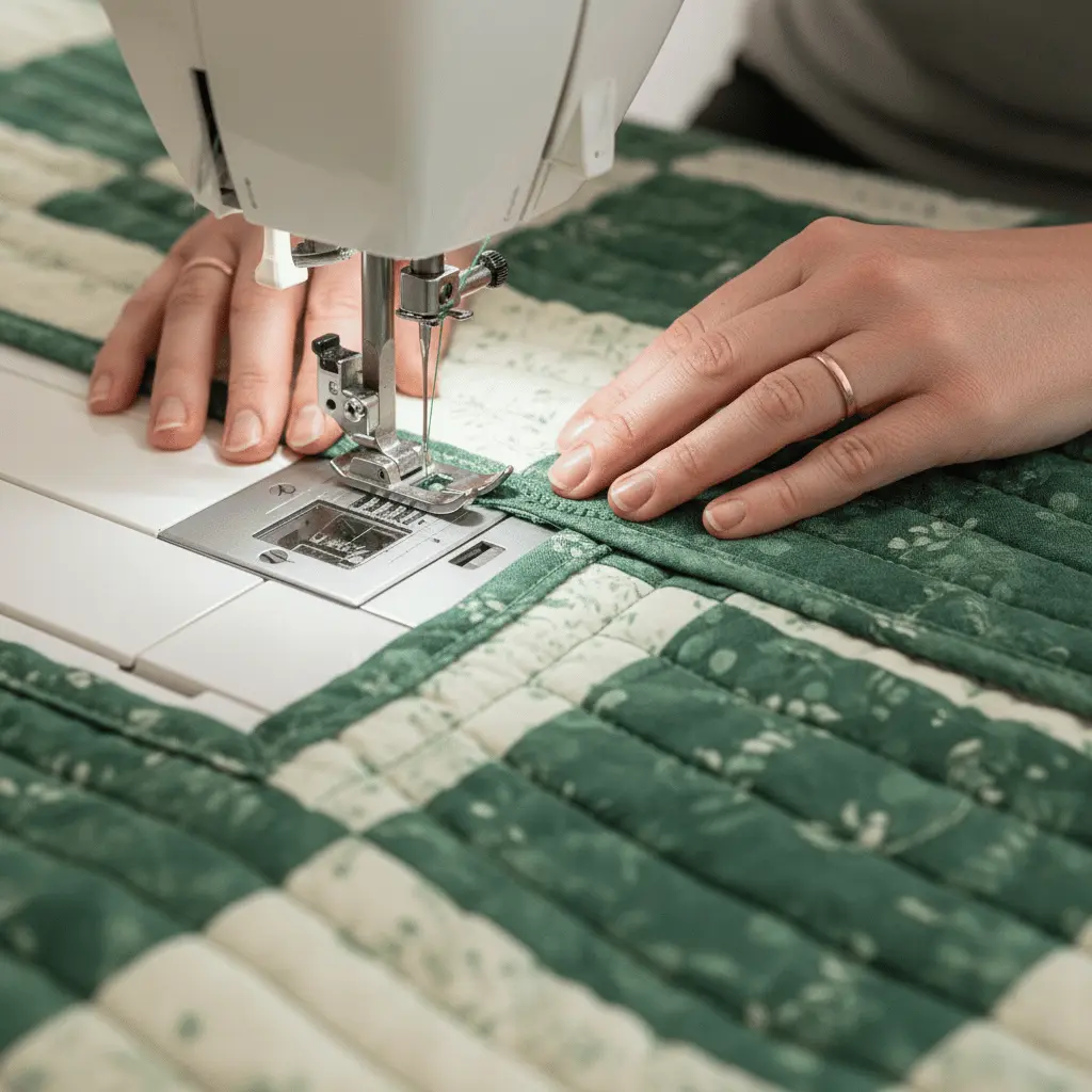 First Stitches: Start with vertical lines down the center seam. Lock stitches at beginning and end. Support quilt weight on all sides to prevent pulling.